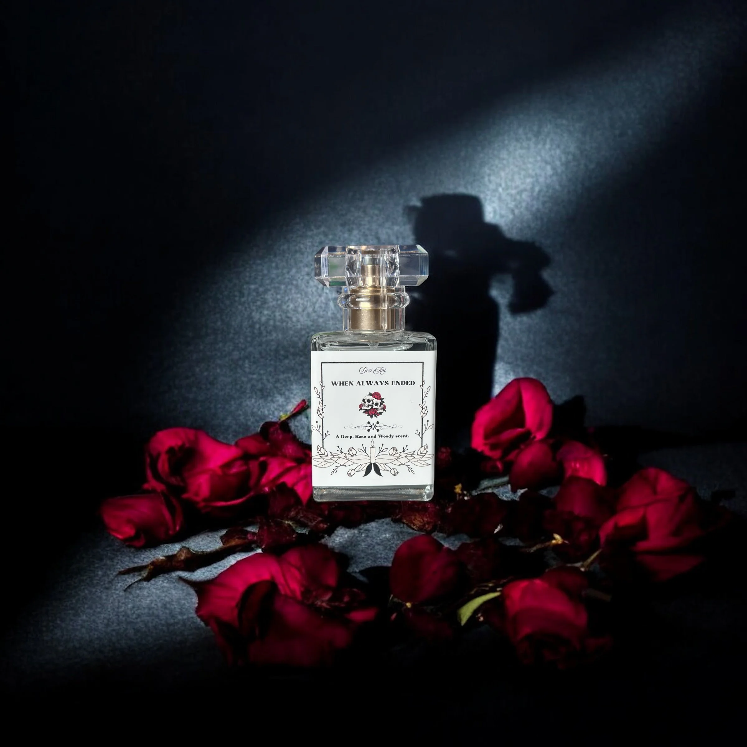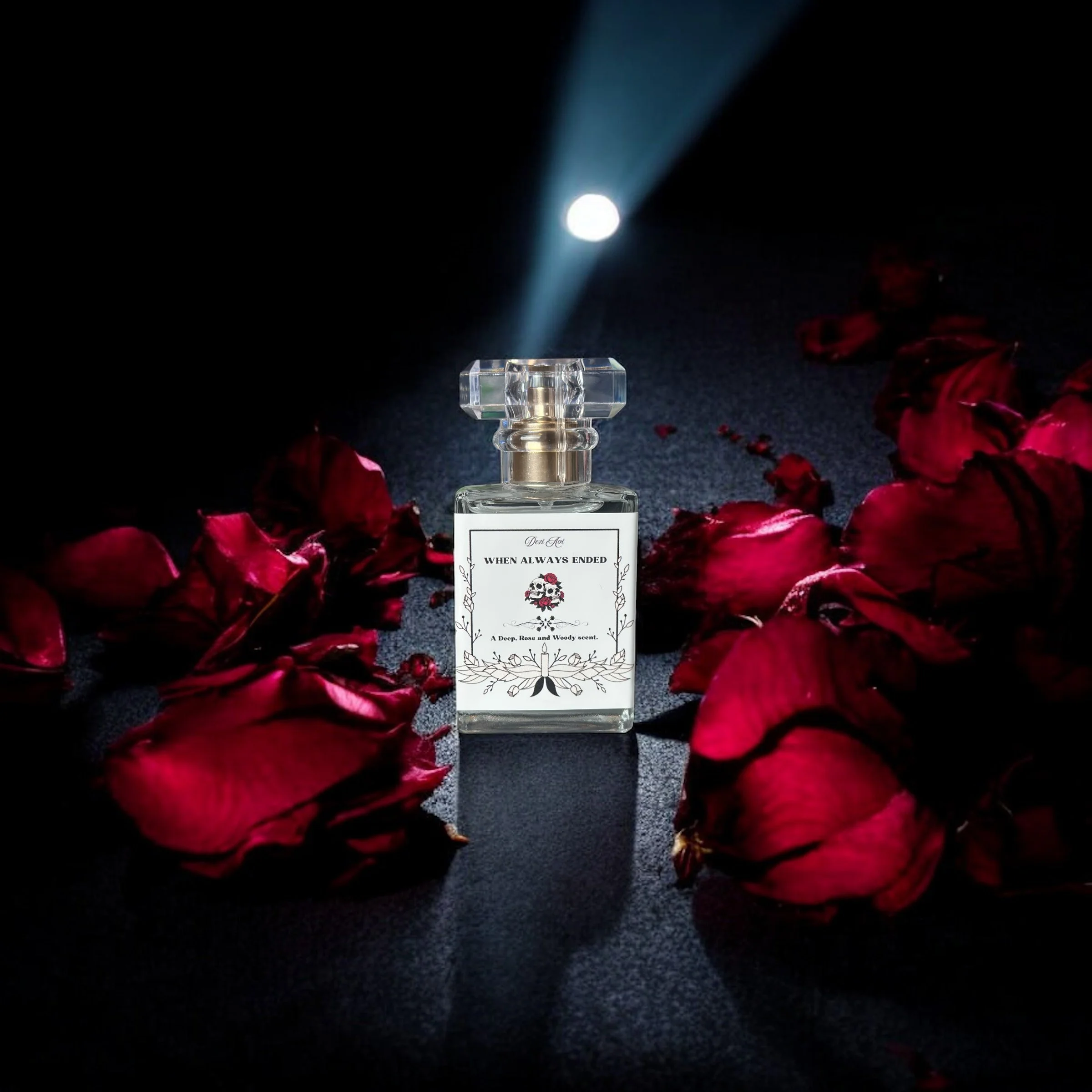 A fragrance born from the poetry of heartbreak and the beauty found in endings. When Always Ended is a deep, emotional, rose-driven scent wrapped in warm woods and shadowy undertones. It evokes the feeling of a love once eternal—now transformed into something haunting, powerful, and unforgettable.
